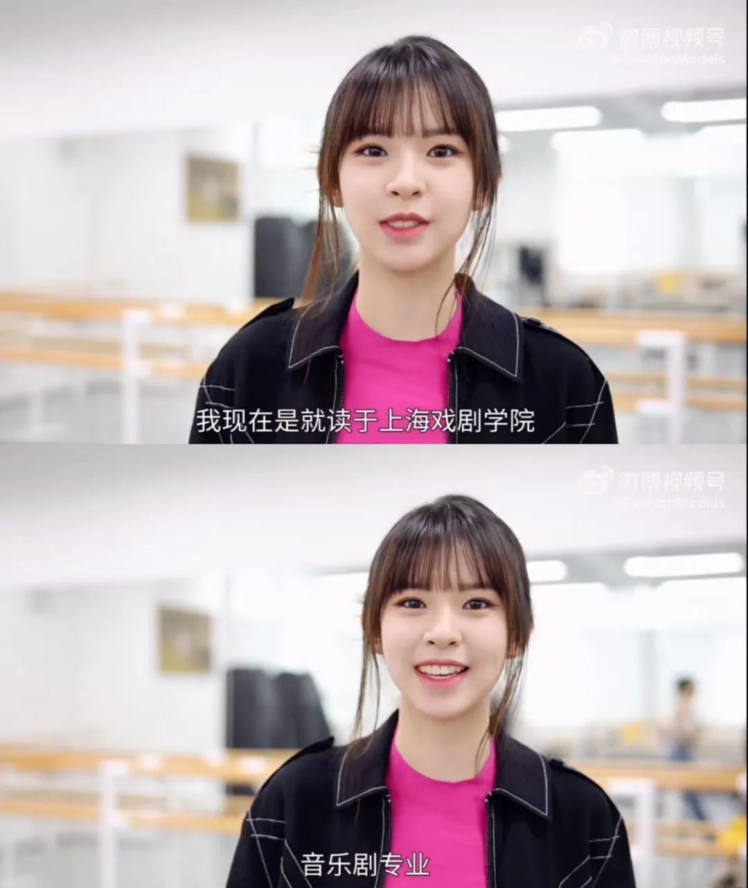 程晨对着镜头向人人自我先容,她就读于上海戏剧学院2022级饰演(音乐剧)专科本科班。