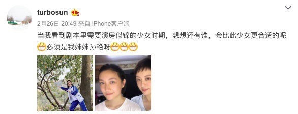 两年前的《安家》,孙俪发博跟人人先容妹妹孙艳出演仙女时期的“房繁花”。