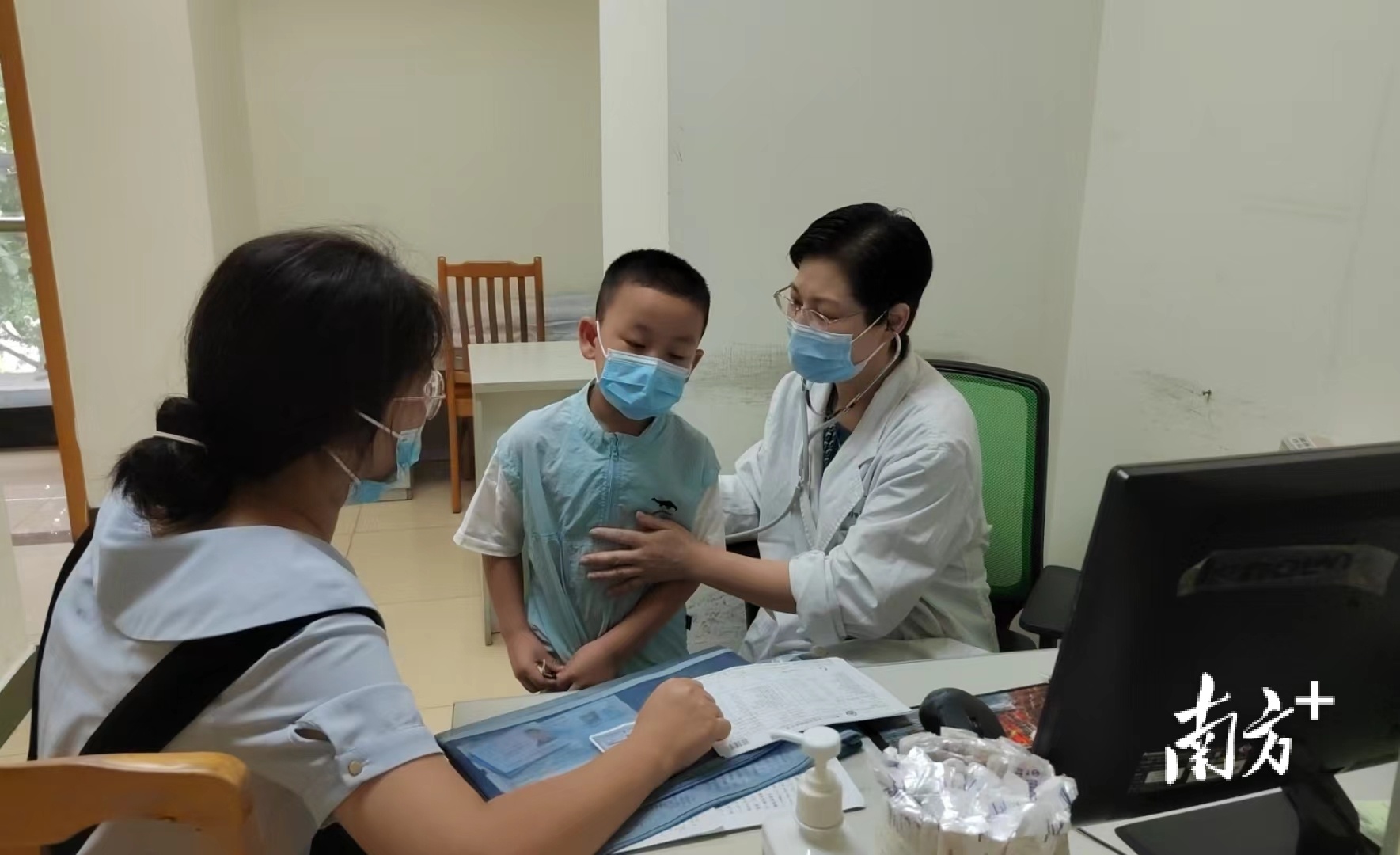 张力一家三口专程从江西赣州赶来,是这天上昼最远的患者。7岁的男儿小轩患有血小板减少症,尽管在当地调整后病情暂时安适,但张力配偶俩还锐利常惦记,是以欺诈假期来到广州,“思听听大大师的看法”。
